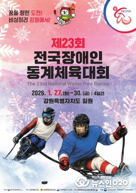 (뉴스인020 = 김민석 기자) 문화체육관광부가 후원하고 대한장애인체육회가 주최하며, 강원특별자치도가 주관하는 ‘제23회 전국장애인동계체육대회’가 1월 27일부터 30일까지 강원특별자치도 일원에서 열린다.