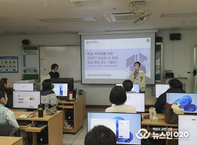 (뉴스인020 = 김성길 기자) 하남 윤슬중학교는 지난 24일 겨울방학을 맞아 진로상담부와 학부모회 주관으로 학생과 학부모를 대상으로 한 ‘생성형 AI(챗GPT) 활용 학습코칭 연수’를 운영했다.