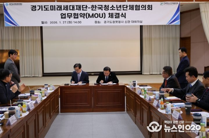 (뉴스인020 = 김성길 기자) 경기도미래세대재단은 27일 수원시 팔달구 옛 경기도청사에서 한국청소년단체협의회와 청소년의 건강한 성장과 글로벌 역량 강화를 위한 업무협약을 체결했다.