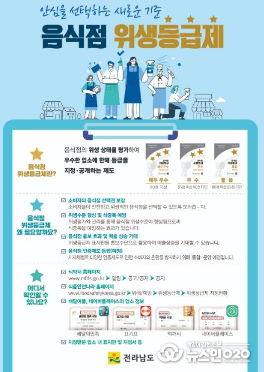 (뉴스인020 = 김성길 기자) 전라남도는 소규모 음식점을 중심으로 ‘환경개선 및 경영혁신 지원사업’을 추진, 안전하고 품격있는 음식문화 조성에 나선다.