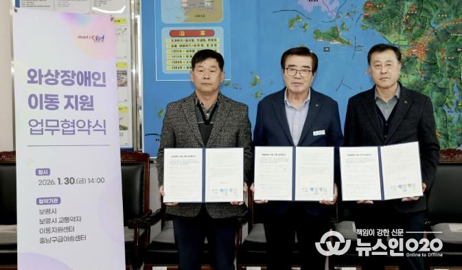 (뉴스인020 = 김성길 기자) 보령시는 30일 시청 시장실에서 보령시 교통약자 이동지원센터와 충남구급이송센터가 함께‘와상장애인 이동 지원’ 시범 운영을 위한 업무협약을 체결했다.