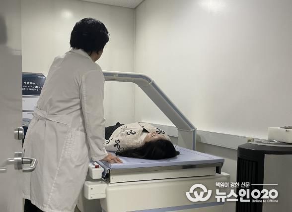 시는 골다공증 예방을 위해 골밀도검사를 진행하고 있다.