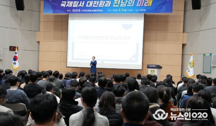 (뉴스인020 = 김성길 기자) 전라남도는 3일 도청 왕인실에서 이언주 더불어민주당 수석최고위원(미래경제성장전략위원회 위원장·AI강국위원회 수석부위원장)을 초청해 ‘국제질서 대전환과 전남의 미래’를 주제로 제301회 전남포럼을 개최했다.