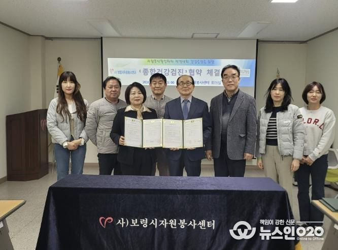 (뉴스인020 = 김성길 기자) 보령시자원봉사센터는 3일 우수자원봉사자들의 건강관리를 위해 자원봉사센터 회의실에서 건양대학교병원과 ‘종합건강검진 협약’을 체결했다.