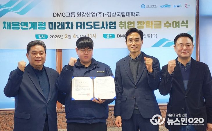 (뉴스인020 = 김성길 기자) 경상국립대학교는 2월 4일 오전 11시 함안군에 소재한 원강산업(주) 회의실에서 ‘채용연계형 미래차 RISE사업 취업 장학금 수여식’을 개최했다.