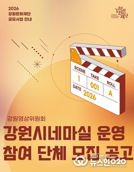 (뉴스인020 = 김성길 기자) 강원문화재단은 도민의 영상문화 향유 기회 확대와 지역 상영문화 활성화를 위해 ‘2026년 강원시네마실 운영’ 참여 단체를 모집한다.