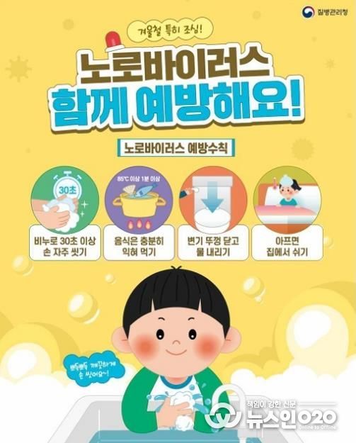 (뉴스인020 = 김성길 기자) 안양시보건소는 설 명절을 앞두고 질병관리청이 발표한 전국 노로바이러스 감염증 의심 환자가 작년 12월 둘째 주 기준 190명에서 올해 1월 셋째 주 기준 617명으로 증가세를 나타냄에 따라, 시민들에게 철저한 개인위생 수칙 준수를 당부했다.