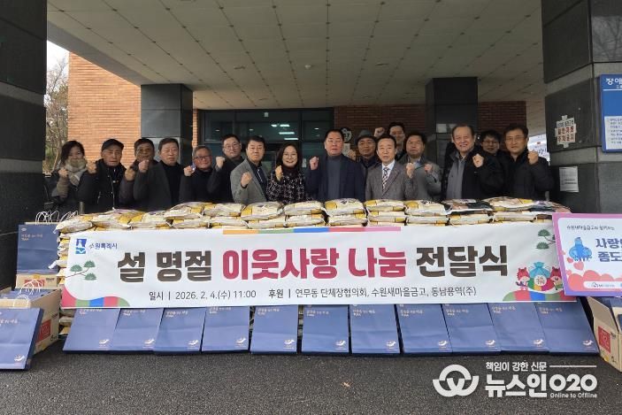 (뉴스인020 = 김성길 기자) 수원시 장안구 연무동 행정복지센터는 지난 4일, 설 명절을 맞아 관내 어려운 이웃을 위한 나눔 전달식을 개최했다.