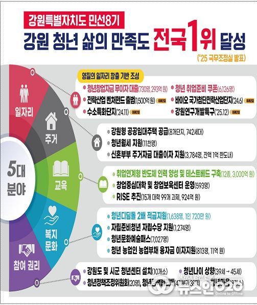 (뉴스인020 = 김성길 기자) 강원특별자치도는 2월 5일'2026~2030 제2차 청년정책 기본계획'을 발표하고, 5년 간 81개 사업에 1조 3,380억 원을 투입해 청년 지원 정책을 본격 추진한다고 밝혔다.