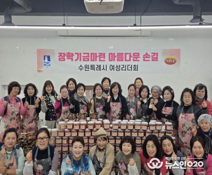 김미애 수원시여성리더회 총회장과 이지영 수원시여성단체협의회 명예회장 등 회원 20여 명이 참여해 명란젓과 낙지젓 등 4종의 젓갈을 소포장해 판매했다. 수익금은 장학금으로 기부할 예정이다.