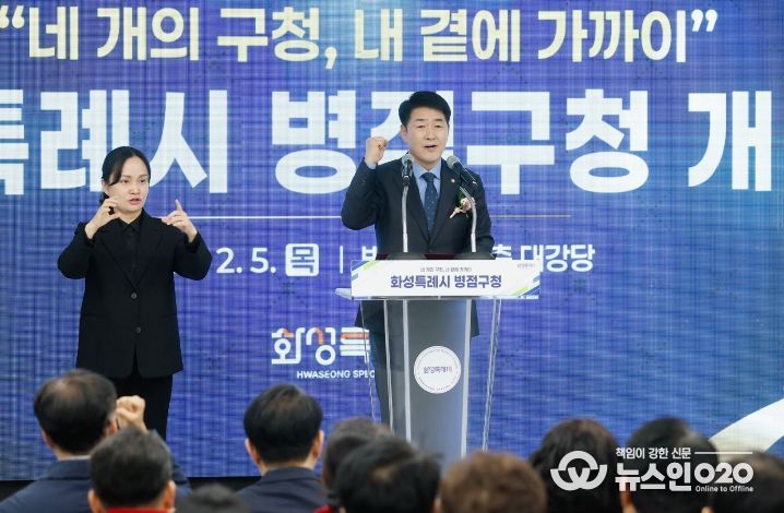 (뉴스인020 = 김성길 기자) 화성특례시의회는 5일 진안동 소재 병점구청(구 동부출장소)에서 열린 '화성특례시 병점구청 개청식'에 참석해, 시민 중심 행정의 새로운 출발을 함께 축하했다.