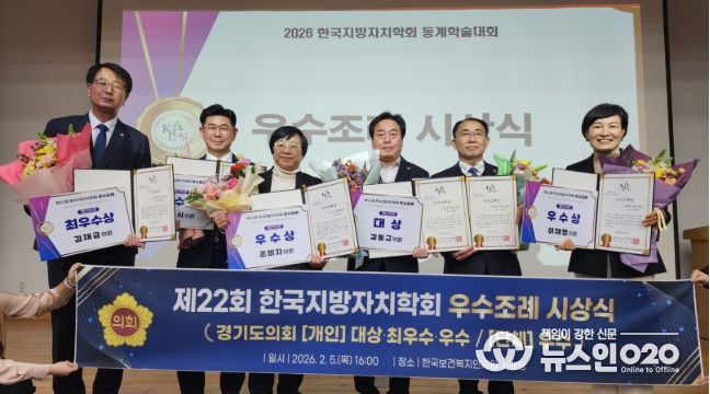 (뉴스인020 = 김성길 기자) 경기도의회가 5일 ‘제22회 한국지방자치학회 우수조례 시상식’에서 개인부문 대상과 단체부문 우수상 등 총 8건을 수상하며 전국 최고의 입법 역량을 입증했다.