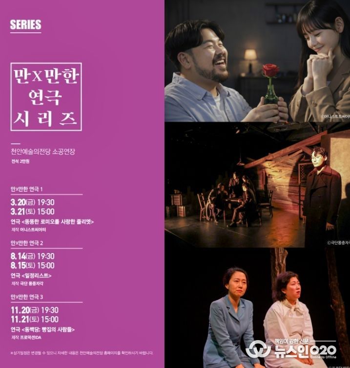 (뉴스인020 = 김성길 기자) 천안문화재단이 오는 10일부터 천안예술의전당 기획공연 ‘만X만한 연극 시리즈’의 티켓 예매를 시작한다.