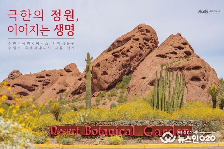 (뉴스인020 = 김성길 기자) 수원수목원은 3월 22일까지 일월수목원 방문자센터 1층에서 수원시 국제자매도시인 피닉스시의 피닉스 사막식물원을 소개하는 사진전 ‘극한의 정원, 이어지는 생명(미국 피닉스 사막식물원 사진전)’을 연다.