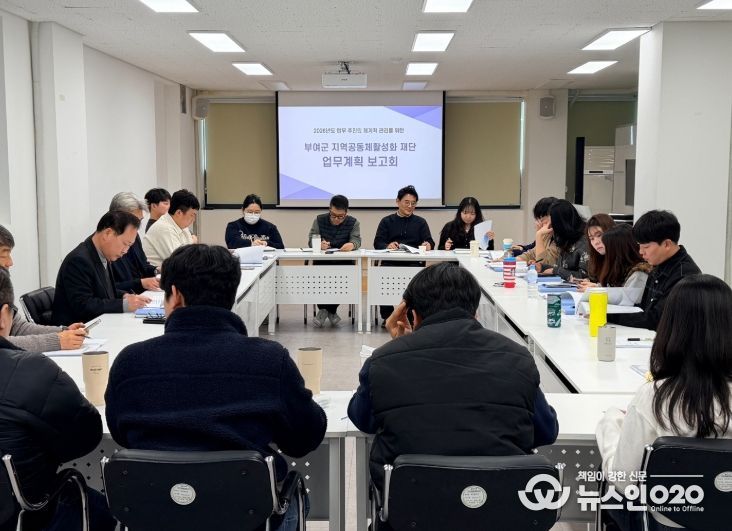 (뉴스인020 = 김성길 기자) 부여군 지역공동체활성화재단은 전 직원을 대상으로 '2026년 개인별 주요업무 추진계획'에 대한 업무보고회를 개최하고, 올해 재단 운영 및 사업 추진 방향을 공유했다고 9일 밝혔다.