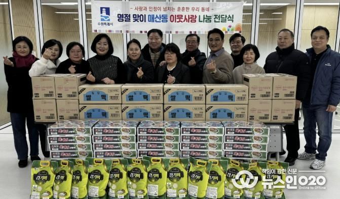 (뉴스인020 = 김성길 기자) 지난 6일, 수원시 팔달구 매산동 단체장협의회는 설 명절을 앞두고 매산동 행정복지센터를 방문해 취약계층 지원을 위한 기부금과 먹거리 물품을 전달하며 이웃돕기 활동을 펼쳤다.