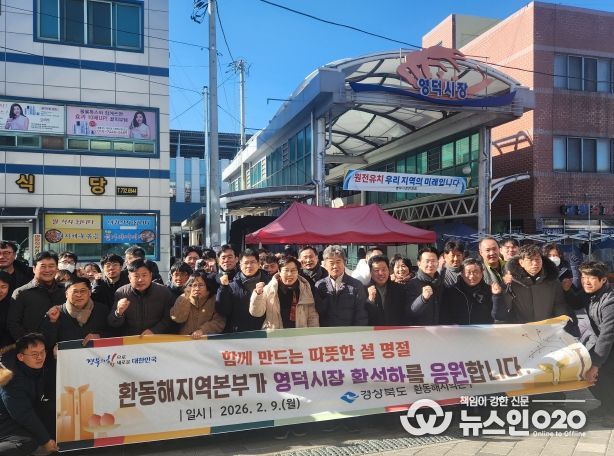 (뉴스인020 = 김성길 기자) 경상북도 환동해지역본부는 2월 9일, 2021년 화재로 전소된 영덕전통시장의 재건축 완료 및 재개장을 기념해 설맞이 장보기를 실시했다. 이번 행사는 대형 화재로 삶의 터전을 잃었던 상인들을 위로하고, 새롭게 출발하는 영덕시장의 도약을 응원하기 위해 마련됐다.
