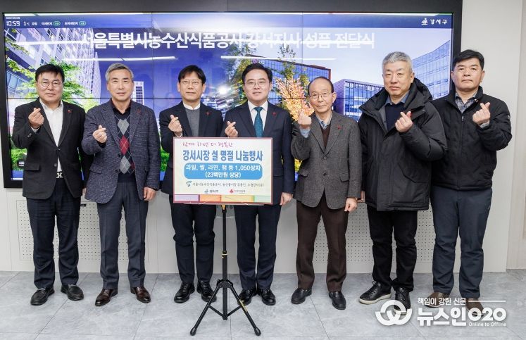 (뉴스인020 = 김성길 기자) 서울 강서구는 10일 서울농수산식품공사 강서지사(지사장 이봉준)로부터 설맞이 이웃돕기 성품을 전달받았다.