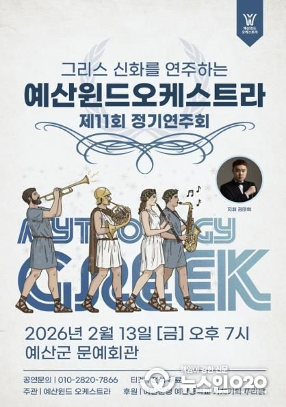 (뉴스인020 = 김성길 기자) 예산윈드오케스트라가 오는 2월 13일 오후 7시 예산군 문예회관에서 제11회 정기연주회를 개최한다.