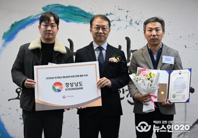 (뉴스인020 = 김성길 기자) 경상남도는 10일 국립고궁박물관에서 열린 국가유산 방재의날 행사에서 국가유산 재난안전 유공 기관으로 선정돼 국가유산청장 표창을 수상했다고 밝혔다.