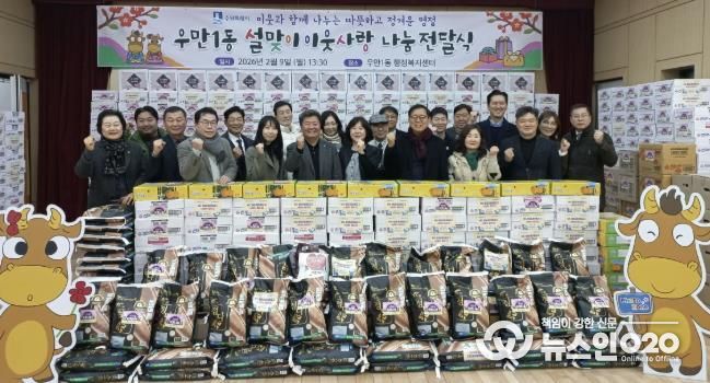 이번 전달식은 관내 유관기관과 기업체, 개인 후원자들의 정성 어린 마음이 하나로 모여 더욱 뜻깊게 진행됐다. 후원금과 함께 백미, 라면 등 생활에 꼭 필요한 생필품이 풍성하게 마련됐으며, 전달된 물품은 우만1동 내 취약계층 가정에 고루 전해져 따뜻한 설 명절을 보내는 데 도움을 줄 예정이다.
