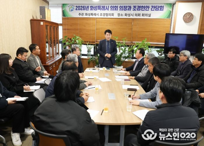 (뉴스인020 = 김성길 기자) 화성특례시의회는 11일 시의회 의장실에서 화성시 조경협의회와 간담회를 열고 지역 조경업체의 건전한 발전과 공공 계약 참여 확대를 위한 제도 개선 방안을 논의했다.