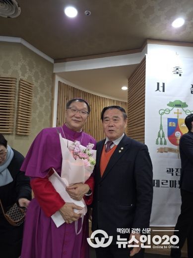 (뉴스인020 = 김성길 기자) 수원특례시의회 이재식 의장은 2월 11일(수) 오후 2시, 장안구 정자동 주교좌성당에서 열린 천주교 수원교구 곽진상 제르마노 주교 서품식에 참석해 신임 보좌주교의 서품을 축하했다.