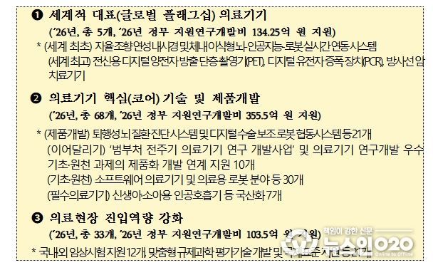 (뉴스인020 = 김나현 기자) 과학기술정보통신부, 산업통상부, 보건복지부, 식품의약품안전처는 2026년 1차 연도 신규 과제 공고와 사업설명회 개최를 통해 ‘범부처 첨단 의료기기 연구개발 사업’을 본격 추진한다고 밝혔다.