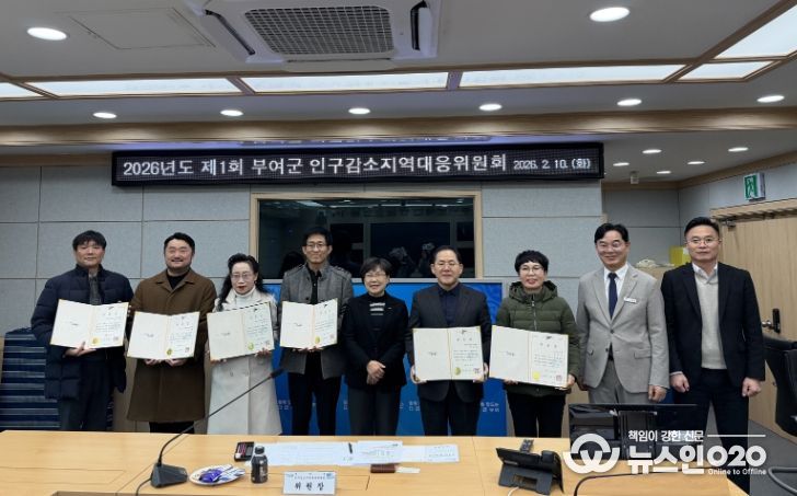 (뉴스인020 = 김성길 기자) 부여군은 군청 재난종합상황실에서 '2026년도 제1회 부여군 인구감소지역대응위원회'를 개최하고, 위원 위촉과 함께 인구감소지역대응 시행계획(안)을 심의·의결했다고 12일 밝혔다.