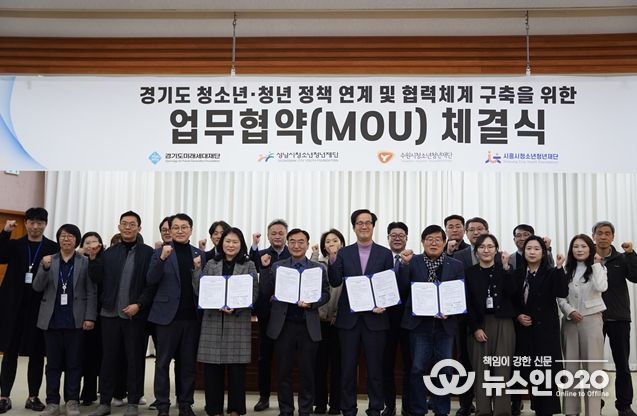 (뉴스인020 = 김성길 기자) 수원시청소년청년재단은 2월 12일, 경기도미래세대재단, 성남시청소년청년재단, 시흥시청소년청년재단과 함께 ‘경기도 청년 정책 연계 및 협력체계 구축을 위한 업무협약’을 체결했다.