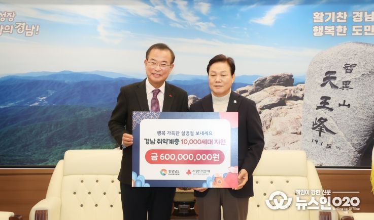 (뉴스인020 = 김성길 기자) 경상남도는 경남사회복지공동모금회(회장 강기철)가 설 명절을 앞두고 도내 어려운 이웃 지원을 위한 위문금 6억 원을 전달했다고 밝혔다.