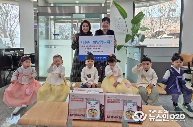 (뉴스인020 = 김성길 기자) 수원시 장안구 조원2동에 위치한 토마토 어린이집은 지난 12일, 설 명절을 맞아 원생들과 함께 조원2동 행정복지센터에 떡국떡 10팩을 전달했다.