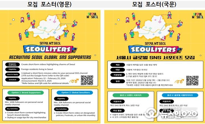 (뉴스인020 = 김성길 기자) 서울시는 서울의 다양한 모습을 외국인 시각으로 소개하는 2026년 글로벌 SNS 서포터즈 ‘서울라이터즈(Seouliters)’ 3기를 2월 12일부터 25일까지 모집한다고 밝혔다.