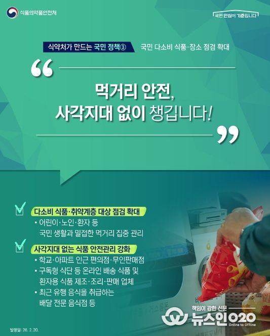 (뉴스인020 = 김나현 기자) 식약처가 만드는 국민 정책- 국민 다소비 식품·장소 점검 확대
