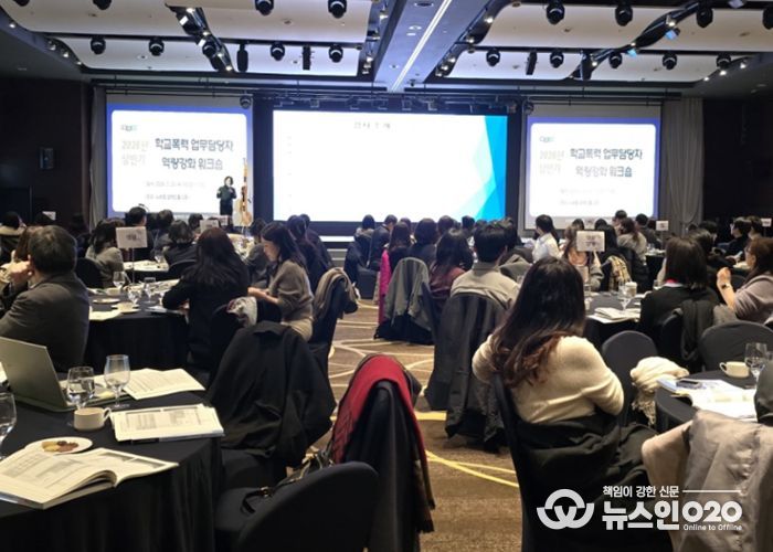 (뉴스인020 = 김성길 기자) 경기도교육청이 25일 수원 노보텔에서 학교폭력의 교육적 회복과 사안 처리 신뢰도 제고를 위한 ‘2026년도 1차 학교폭력 업무 담당자 역량 강화 워크숍’을 개최했다.
