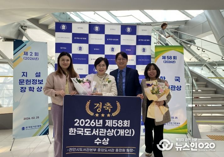 (뉴스인020 = 김성길 기자) 천안시는 25일 홍정원 천안시도서관본부 중앙도서관 팀장이 도서관 분야 최고 권위의 상인 제58회 한국도서관상에서 개인상을 수상했다고 밝혔다.