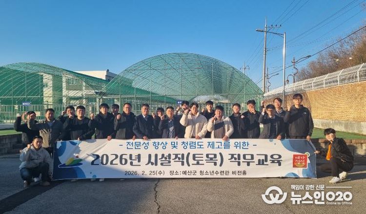(뉴스인020 = 김성길 기자) 예산군은 시설직(토목) 공무원의 전문성과 업무 효율성 강화를 위해 지난 25일 청소년수련관에서 시설직(토목) 공무원 90명을 대상으로 직무역량 강화 교육을 실시했다고 밝혔다.