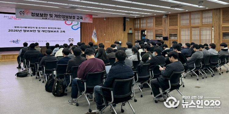 (뉴스인020 = 김성길 기자) 논산시는 26일 시청 회의실에서 정보시스템 담당자와 유지보수 참여 인력 105명을 대상으로 ‘정보보안 및 개인정보보호 교육’을 실시했다.