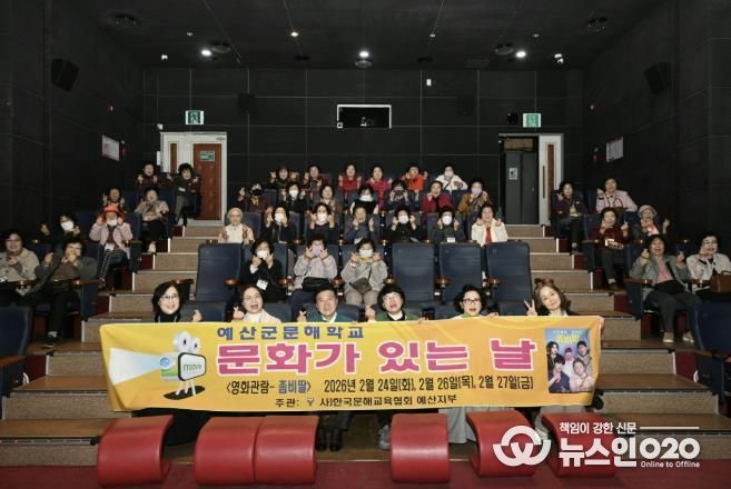 (뉴스인020 = 김성길 기자) 예산군은 찾아가는 문해교실의 일환으로 2월 24일과 26일, 27일 3일간 문해학습자 어르신 252명을 대상으로 예산시네마에서 영화 ‘좀비딸’을 관람하는 ‘문화가 있는 날’ 행사를 진행했다.