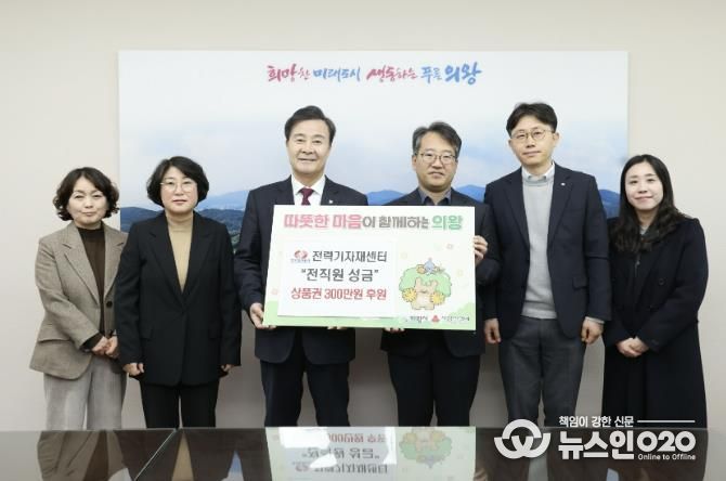 (뉴스인020 = 김성길 기자) 한국전력공사 전력기자재센터가 3월 3일, 의왕시 저소득층을 위해 온누리상품권 300만원을 기부했다.