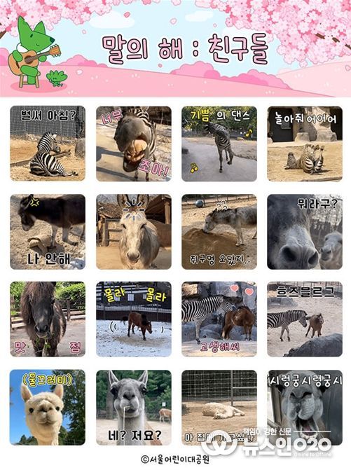 (뉴스인020 = 김성길 기자) 서울시설공단은 광진구 능동 서울어린이 대공원에서 ‘말의 해’를 맞아 제작한 ‘말과 친구들’ 카카오톡 이모티콘을 무료 배포하고, 도심 속 농부 체험을 할 수 있는 ‘어린이 텃밭’ 참여 가족을 모집한다고 6일 밝혔다.