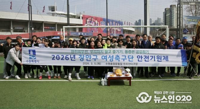 (뉴스인020 = 김성길 기자) 수원시 장안구 여성축구단은 지난 5일, 수원종합운동장 인조잔디구장에서 선수단과 관계자 등 30여 명이 참석한 가운데 2026년 안전기원제를 진행했다.