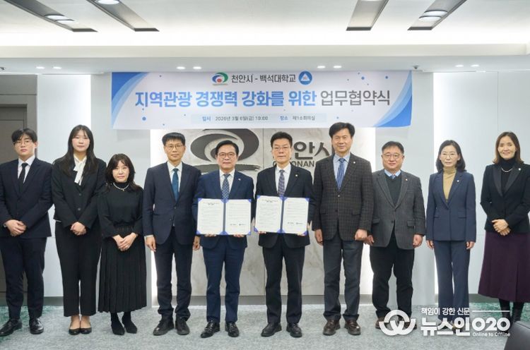 (뉴스인020 = 김성길 기자) 천안시가 백석대학교와 손을 잡고 지역관광 경쟁력 강화와 전문 인재 양성을 위한 체계적인 협력 체계 구축에 나선다.