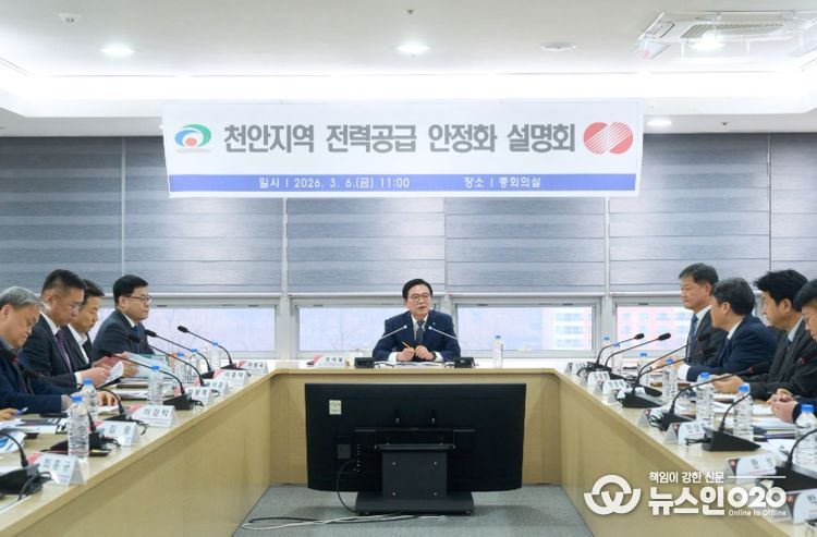 (뉴스인020 = 김성길 기자) 천안시는 6일 시청 중회의실에서 한국전력공사 대전세종충남본부와 함께 ‘천안지역 전력공급 안정화를 위한 설명회’를 개최하고 중장기 전력 인프라 확충 방안을 논의했다.