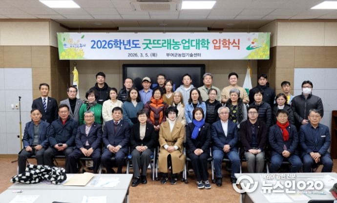(뉴스인020 = 김성길 기자) 부여군은 농업기술센터 굿뜨래홍보교육관에서 미래농업을 이끌 정예 양성을 위한 ‘2026학년도 굿뜨래농업대학’ 입학식을 개최했다고 9일 밝혔다.