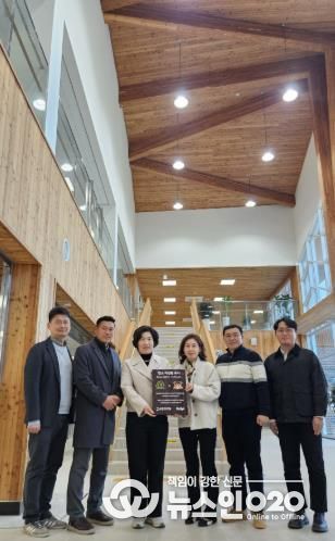 (뉴스인020 = 김성길 기자) 전라남도산림연구원은 산림비즈니스센터 내부 목구조 건축물이 한국임업진흥원으로부터 탄소저장량 공식 인증을 획득해 10일 현판식을 개최했다.