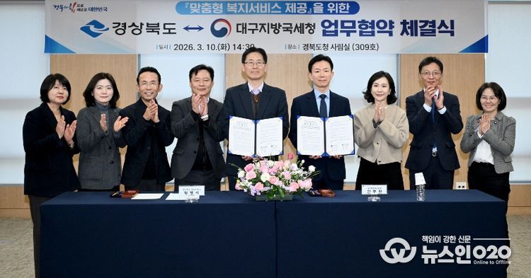 (뉴스인020 = 김성길 기자) 경상북도와 대구지방국세청은 2026. 3. 10. 도청 사림실에서 '생계형 국세체납자 복지지원 연계 강화를 위한 업무협약(MOU)'을 체결했다.