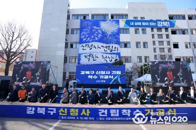 (뉴스인020 = 김성길 기자) 서울 강북구는 지난 10일 신청사 건립부지인 기존 강북구청 주차장에서 ‘신청사 건립 착수 기공식’을 개최하고 신청사 건립 사업의 본격적인 시작을 알렸다.