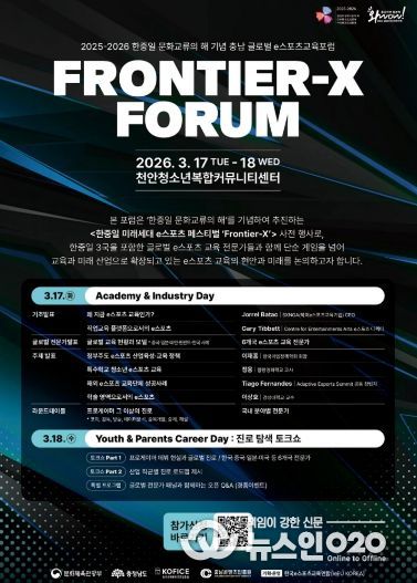 (뉴스인020 = 김성길 기자) 충남콘텐츠진흥원은 오는 3월 17일 ~ 18일 천안청소년복합커뮤니티센터에서 충남 글로벌 이스포츠 교육 포럼을 개최한다고 밝혔다.
