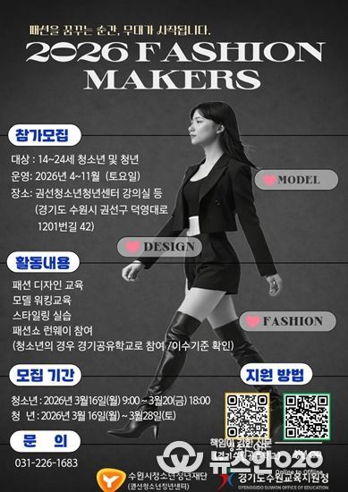 (뉴스인020 = 김성길 기자) 수원시청소년청년재단 권선청소년청년센터는 패션 분야 진로에 관심 있는 청소년과 청년을 대상으로 ‘패션메이커스(Fashion Makers)’ 프로그램 참가자를 모집한다.